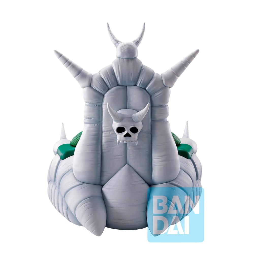 Mit einem finsteren Lächeln und den klauenartigen Fingern, die auf den Armlehnen ruhen, strahlt die Figur die pure Dominanz aus, die Piccolo Daimaoh in den Anfängen von Dragon Ball so legendär machte.