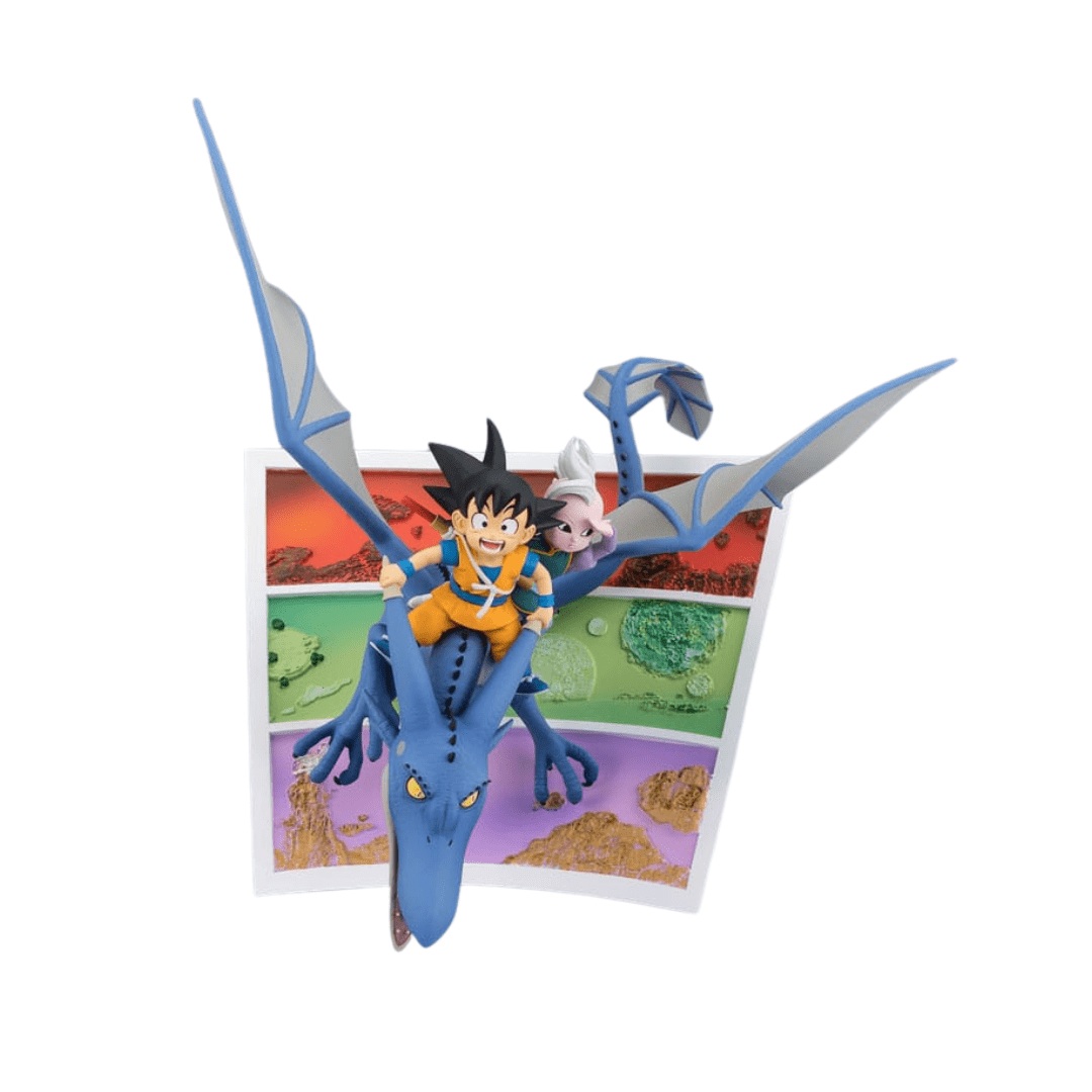 Dieses aufwendig gestaltete Diorama aus der FiguartsZERO-Reihe fängt die fantastische Reise des jungen Son Goku und des Supreme Kai (Shin) auf einzigartige Weise ein.